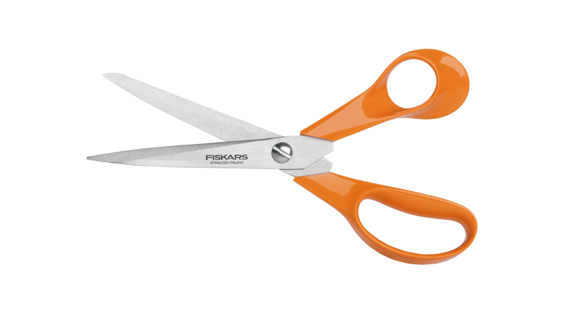 I dag står Fiskars bag et væld af værktøj, hobbyudstyr, haveredskaber og naturligvis køkkenudstyr. Men det hele startede faktisk med den velkendte orange universalsaks, som i dag er at finde i mange køkkenskuffer og på MOMA - Museum of Modern Art i New York. Historien går tilbage til 1967. Årsagen til at den ikoniske saks’ håndtag er orange, skyldes mest af alt et tilfælde. Da prototypen skulle fremstilles, besluttede maskinarbejderen sig for også at bruge den orange farve, maskinen i forvejen havde, hvilket resulterede i, at prototypen også blev produceret i orange. Da den orange farve var den mest populære, besluttede en intern afstemning hos Fiskars, at den orange saks skulle bestå. Saksen var i øvrigt en revolution, da den var langt lettere at håndtere en de tunge smedede sakse, der også hurtige blev sløve. I dag er der solgt en milliard eksemplarer af den orange saks.